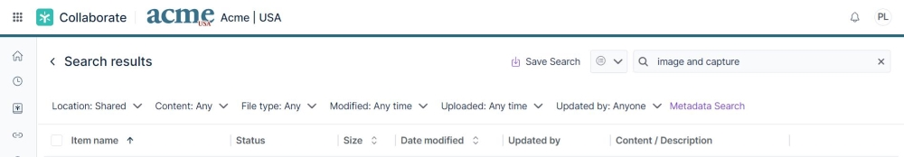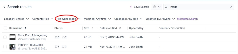 Metadata search enables users to get more precise search results by using the metadata attributes associated with the files which may include author name, file type, modified date, or any other custom field. Users can define metadata fields either with Egnyte’s Metadata API or within the user interface and use those fields to set values on files and folders.