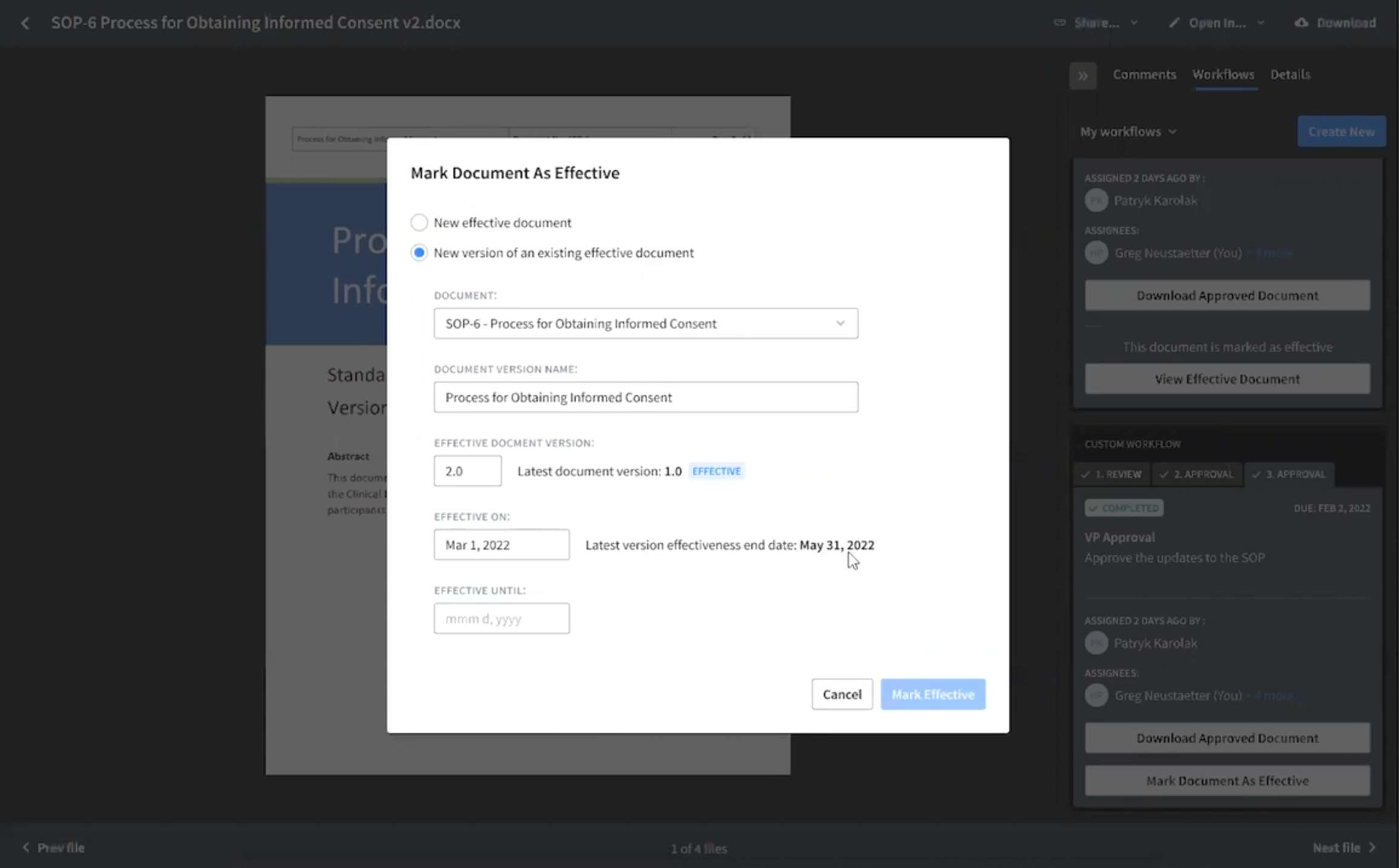 - The preview will include its status and effective date in the PDF and a 21 CFR Part 11-compliant signature page