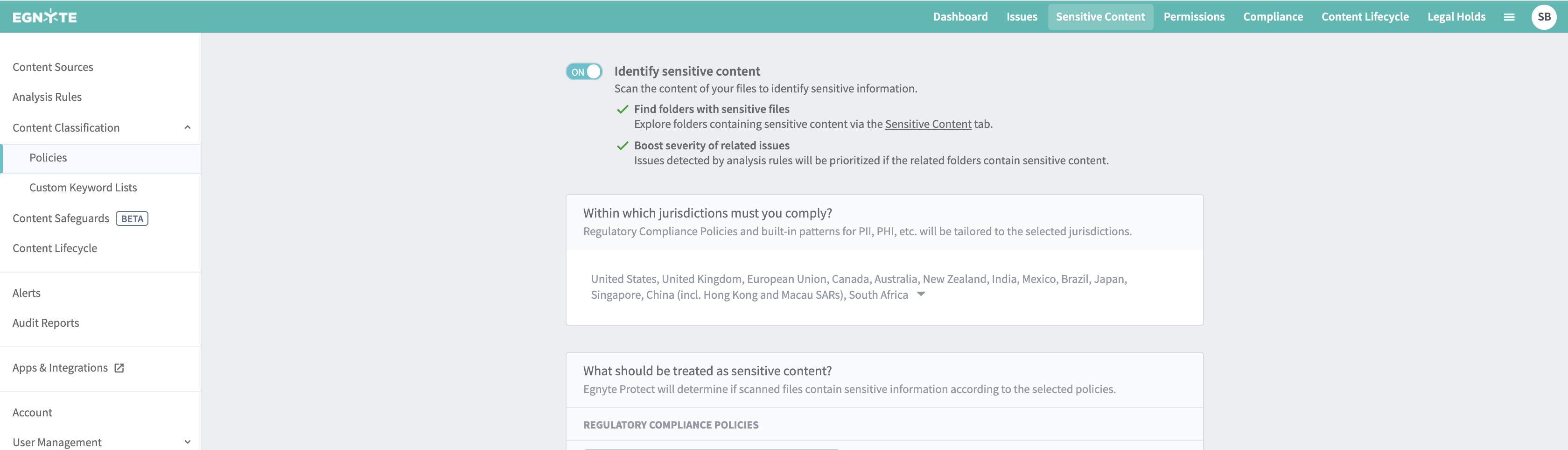 - Turn on Content Classification in your Settings page. You can have select folders scanned or the whole domain.