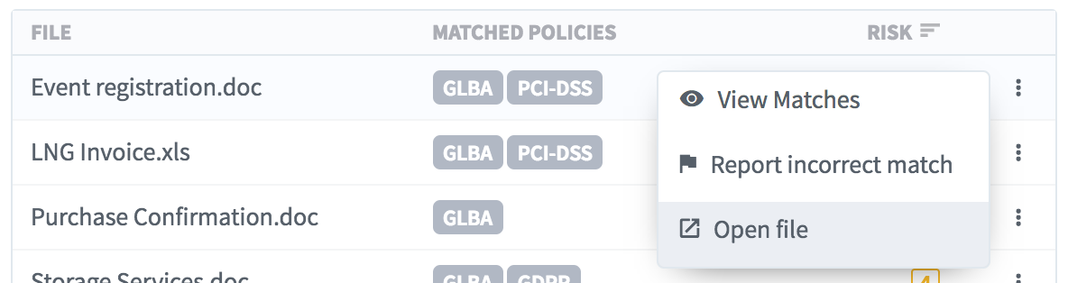 - Reporting a false positive: If the file is not truly sensitive, you can provide this feedback to Egnyte by reporting it as an incorrect match.
