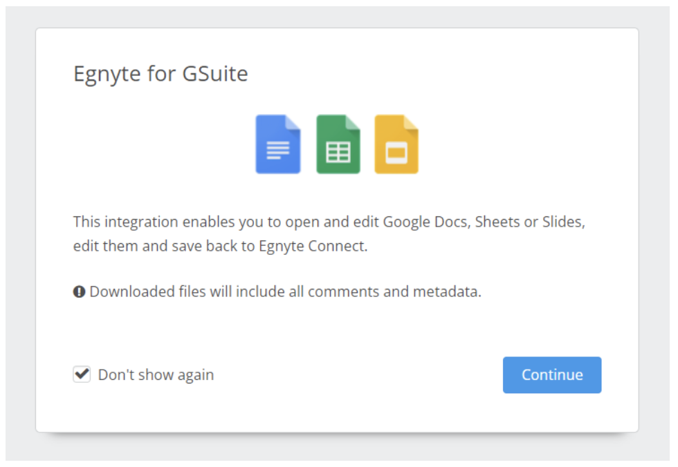 To access Google documents from Egnyte, you should add Google Workspace to Egnyte’s Web UI from the App & Integrations portal.