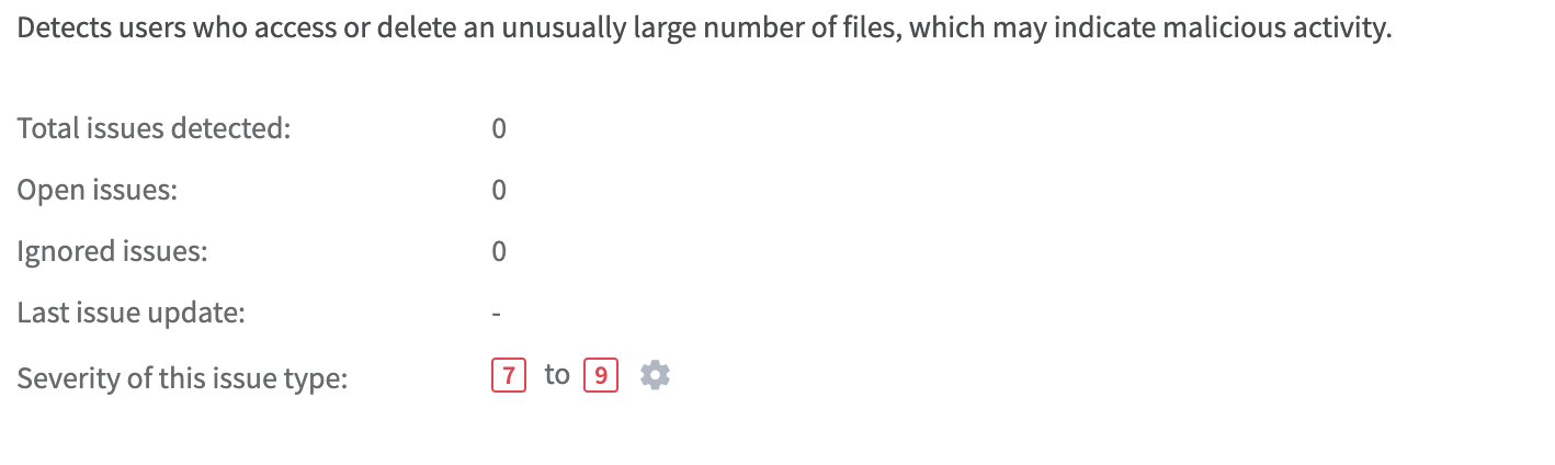 In the example above, a user who accesses or deletes 15 files during the assessment period will trigger an issue.
