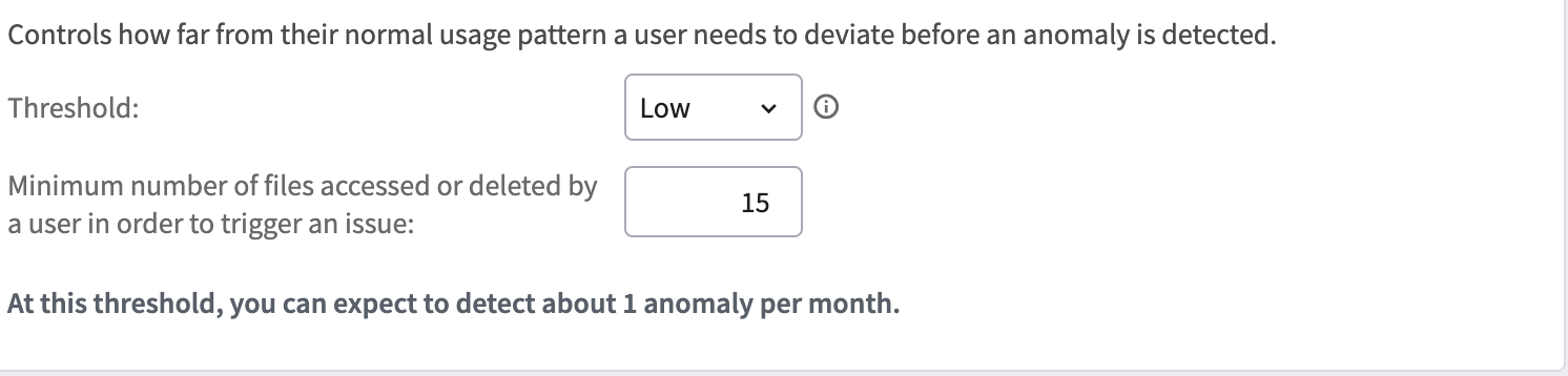 You can also establish a minimum number of files that need to be accessed by a particular user in order to trigger an issue.