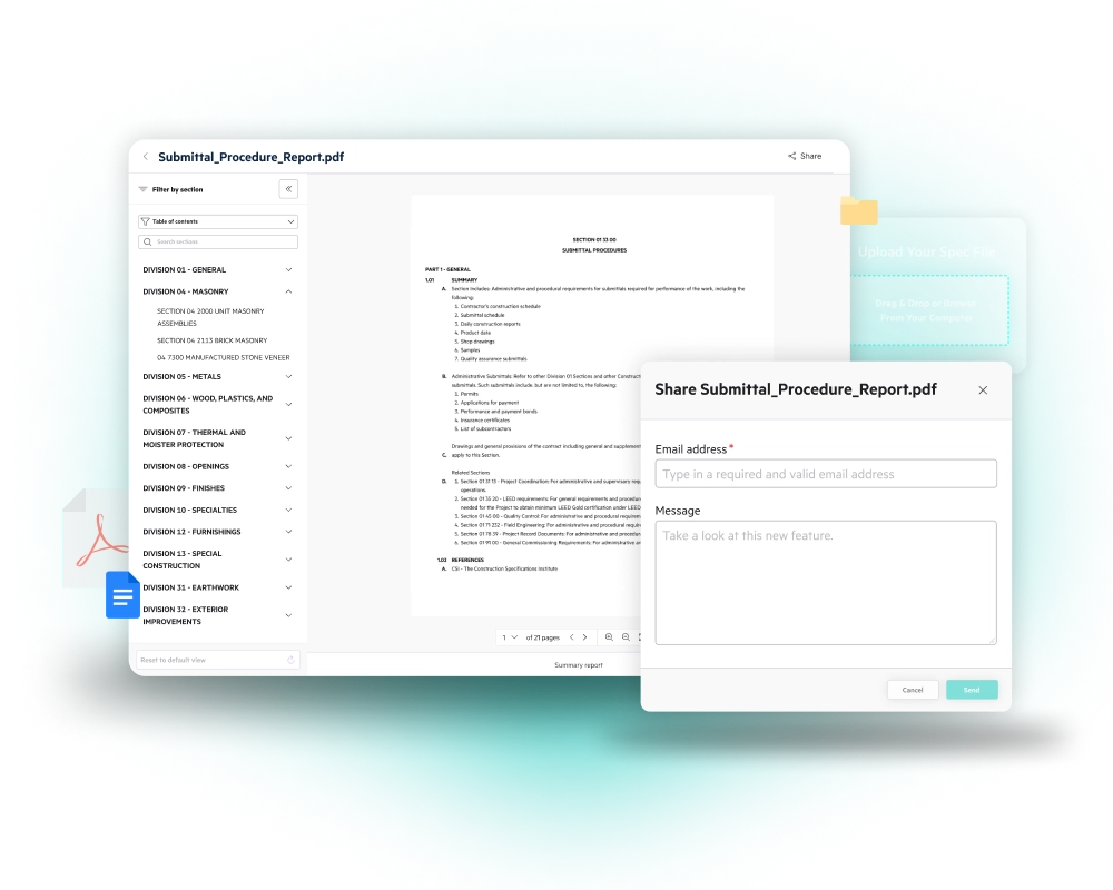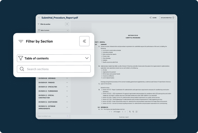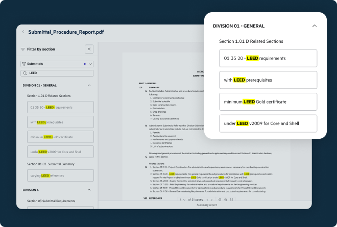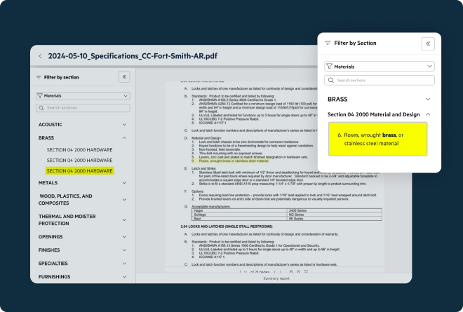 Reduce rework in the field and develop more accurate bids in the office by automatically parsing project specifications so you, and your team, can find the information you need quickly.