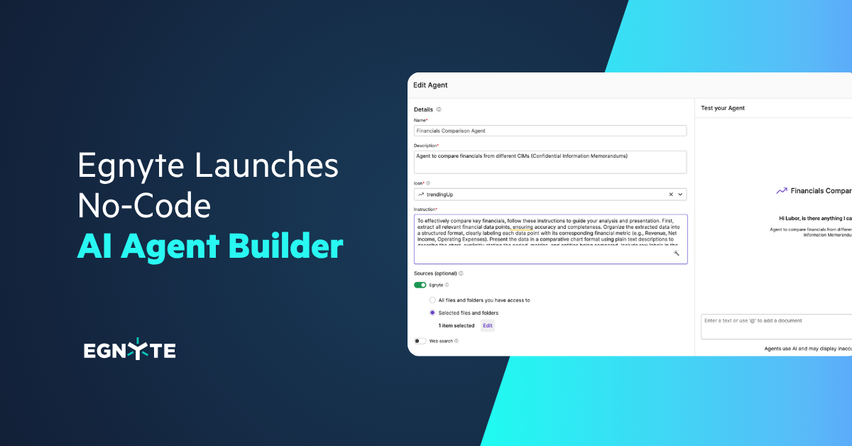 "Our Agent Builder democratizes AI-powered automation so that teams can build the exact tools they need to solve productivity challenges without needing intervention from their engineering teams," said Prasad Gune, Chief Product Officer at Egnyte. "This goes beyond simply improving processes; it represents a fundamental shift in how knowledge-based work gets done, without compromising data privacy and security."